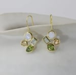 A handmade pair of gold vermeil Citrine, Peridot, Blue Topaz & Moonstone earrings by Devon based Guest Designer Banyan.