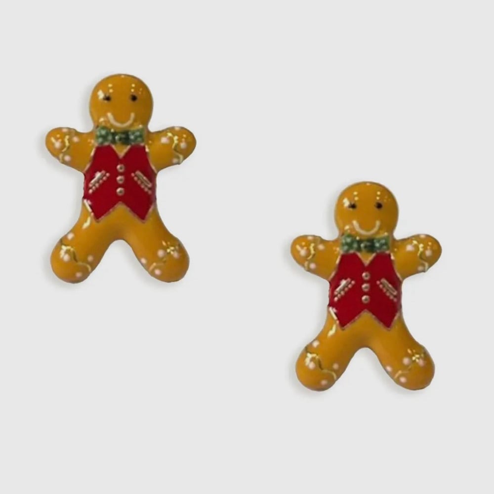 Beautiful enamel-painted Gingerbread man earrings, designed by Bill Skinner.