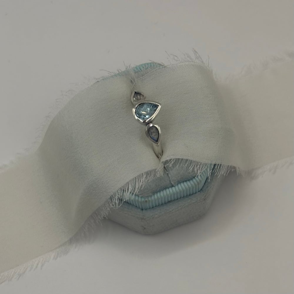 Blue Topaz & Moonstone Trio Teardrop Ring