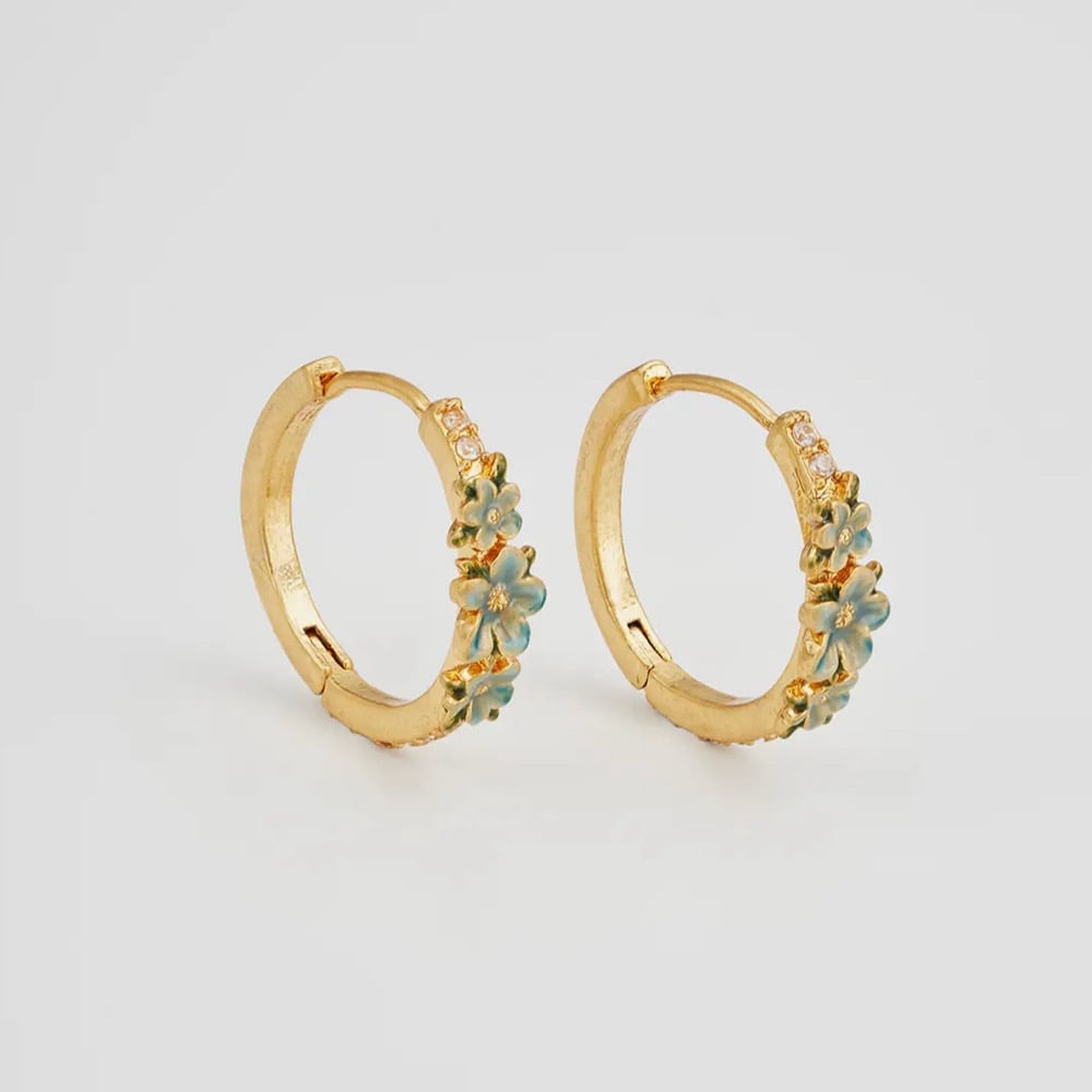 14ct gold plated hoop earrings featuring a hand-painted floral wreath enamel design.