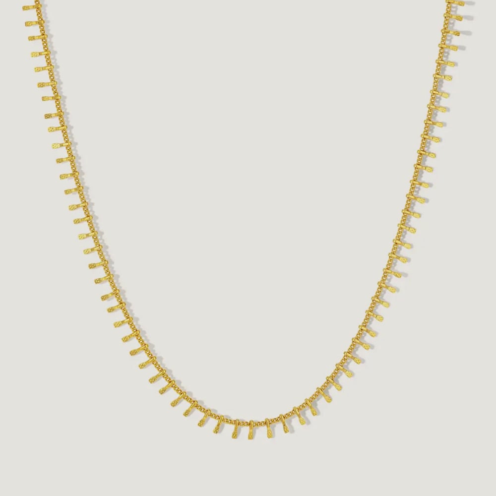 A little bit of texture goes a long way. Our Riley necklace has delicate little bars that catch the light beautifully, so you can be sure to turn heads whether wearing this alone, or stacked with your favourite pendants.