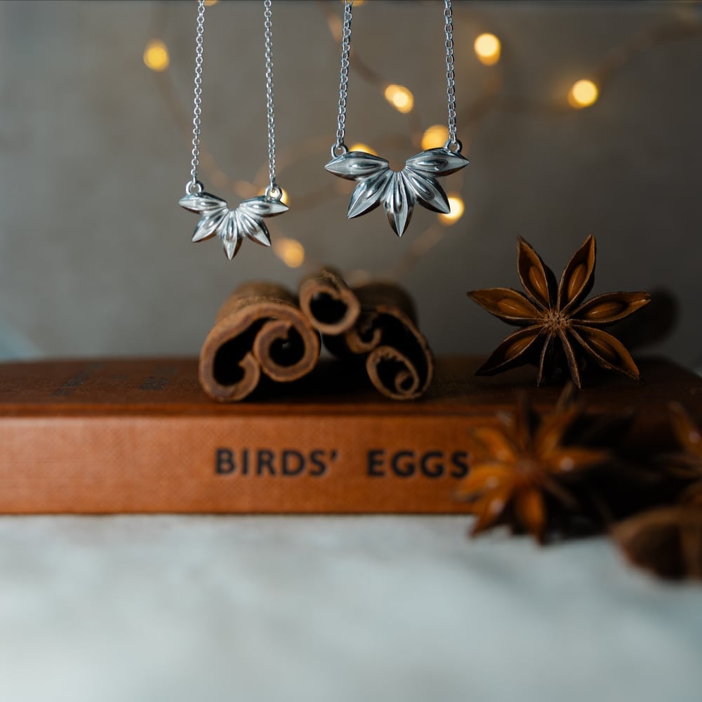 Made from sterling silver, the half Star Anise pendant is double sided which can be worn to show the symmetry of the star points or the intricate front.