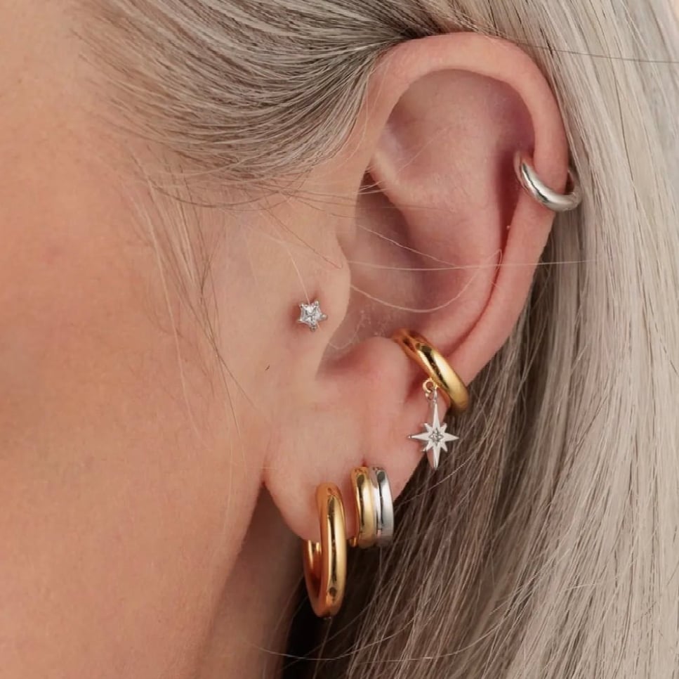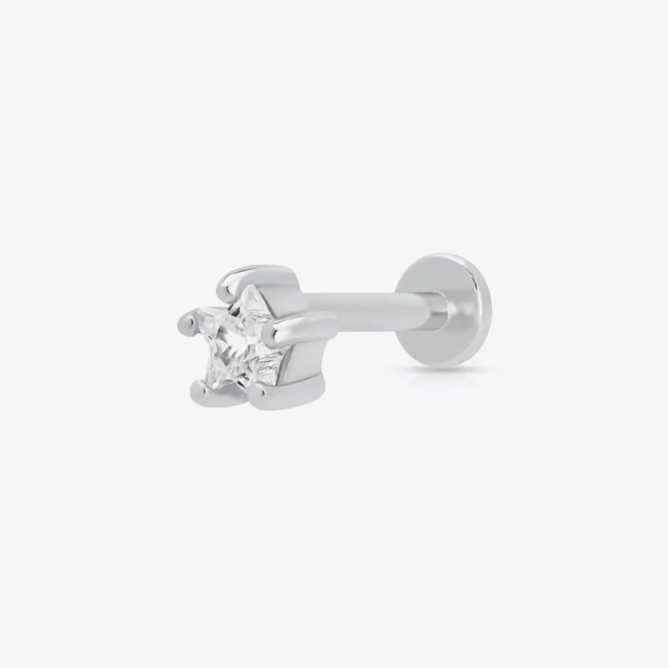 Studded with a clear cubic zirconia stone shaped like a star, labret stud earrings can be worn anywhere on the ear.